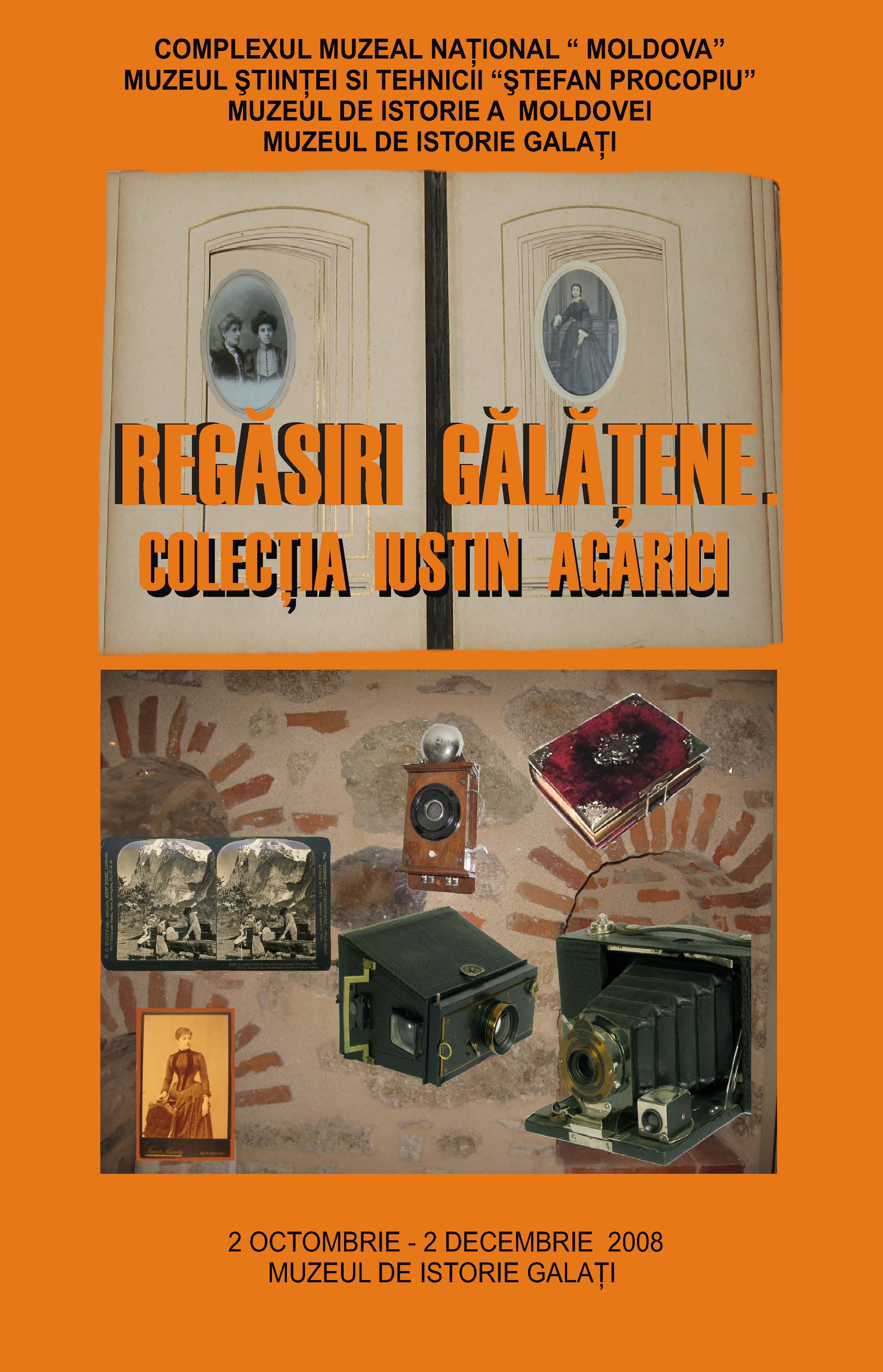 Muzeul de Istorie Galați vă invită miercuri, 1 octombrie 2008, ora 1400, la vernisajul expoziției Regăsiri Gălățene. Colecția Iustin Agarici, expoziție organizată de Complexul Muzeal Național „Moldova”, Muzeul Științei și Tehnicii „Ștefan Procopiu” și Muzeul de Istorie al Moldovei din Iași.